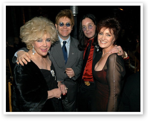 24NOV96-LOS ANGELES, CALIFORNIA, USA: Pop icon Elton John and actress and AIDS activist Elizabeth Taylor kiss during the Los Angeles Gay & Lesbian Center's 25th anniversary gala and silent auction November 23 where Taylor presented John with the Rand Schrader Distinguished Achievement Award.